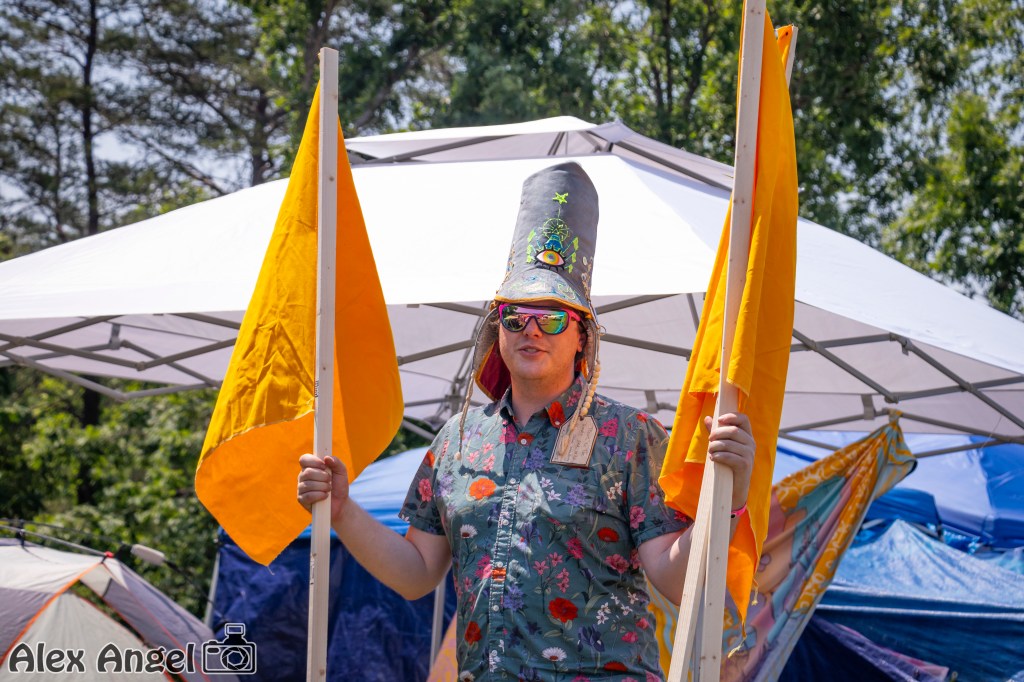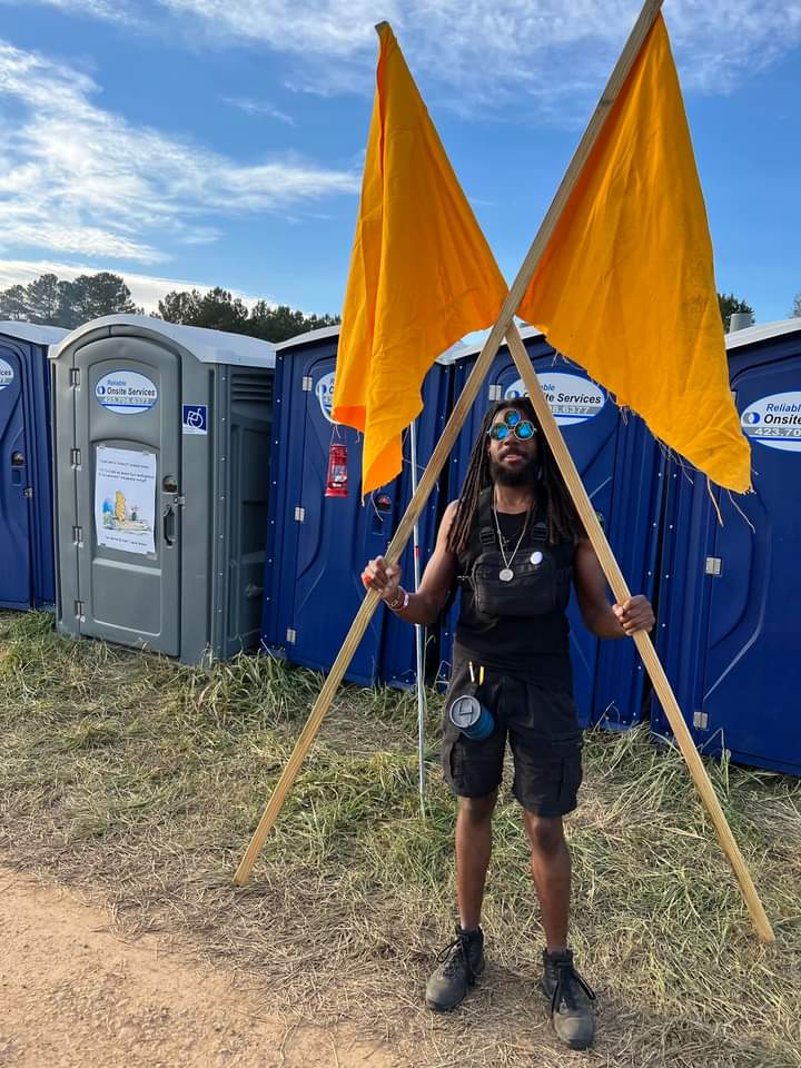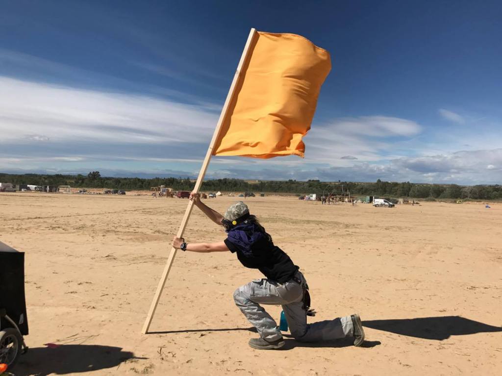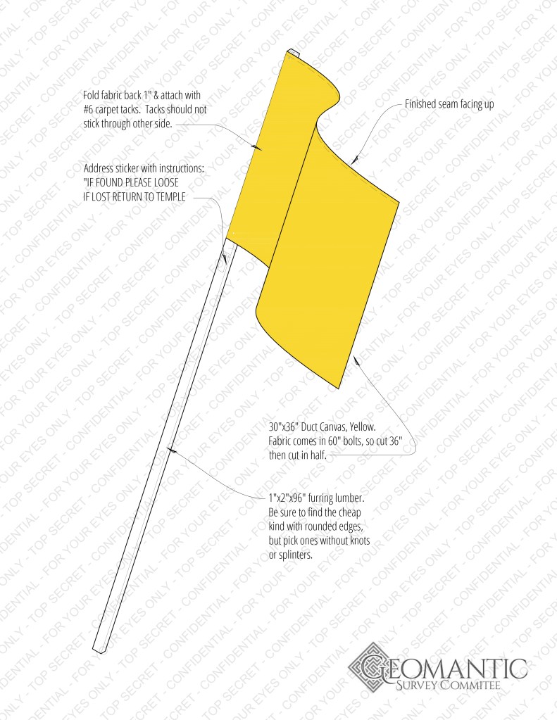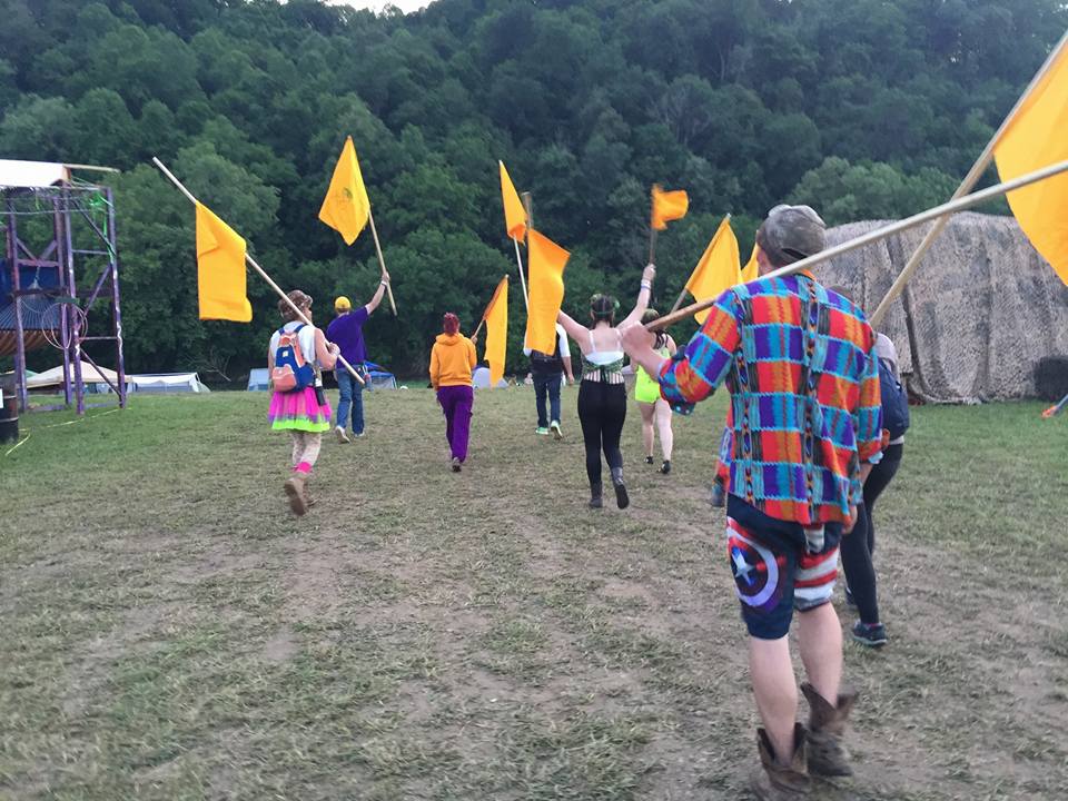 “Vexillomancy”/”Flags” is a piece produced for the Flashpoint Artists Initiative “Alchemy” event since 2016. Part art installation, part game, the project consists of dozens (50-100) of large yellow Flags on poles placed around the festival. Participants are invited to move around the Flags, increasing their ubiquity around the event and organically creating a sense of play. Explanations are kept intentionally inconsistent and surreal (involving ley lines, astological alignment, weather control, ect), allowing participants space to interpret the project in their own ways with multiple conflicting narratives emerging as to the purpose of the Flags